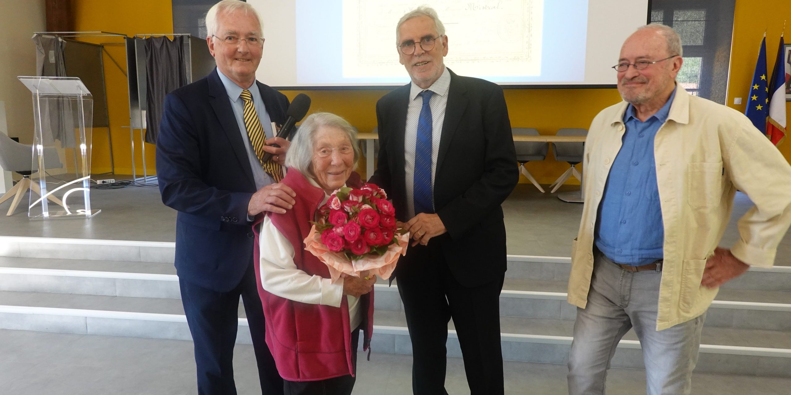 La conférence sur Frédéric Mistral a été l’occasion de mettre à l’honneur notre doyenne, madame Rose Pous, qui fêtera prochainement son entrée dans sa 99ème année.